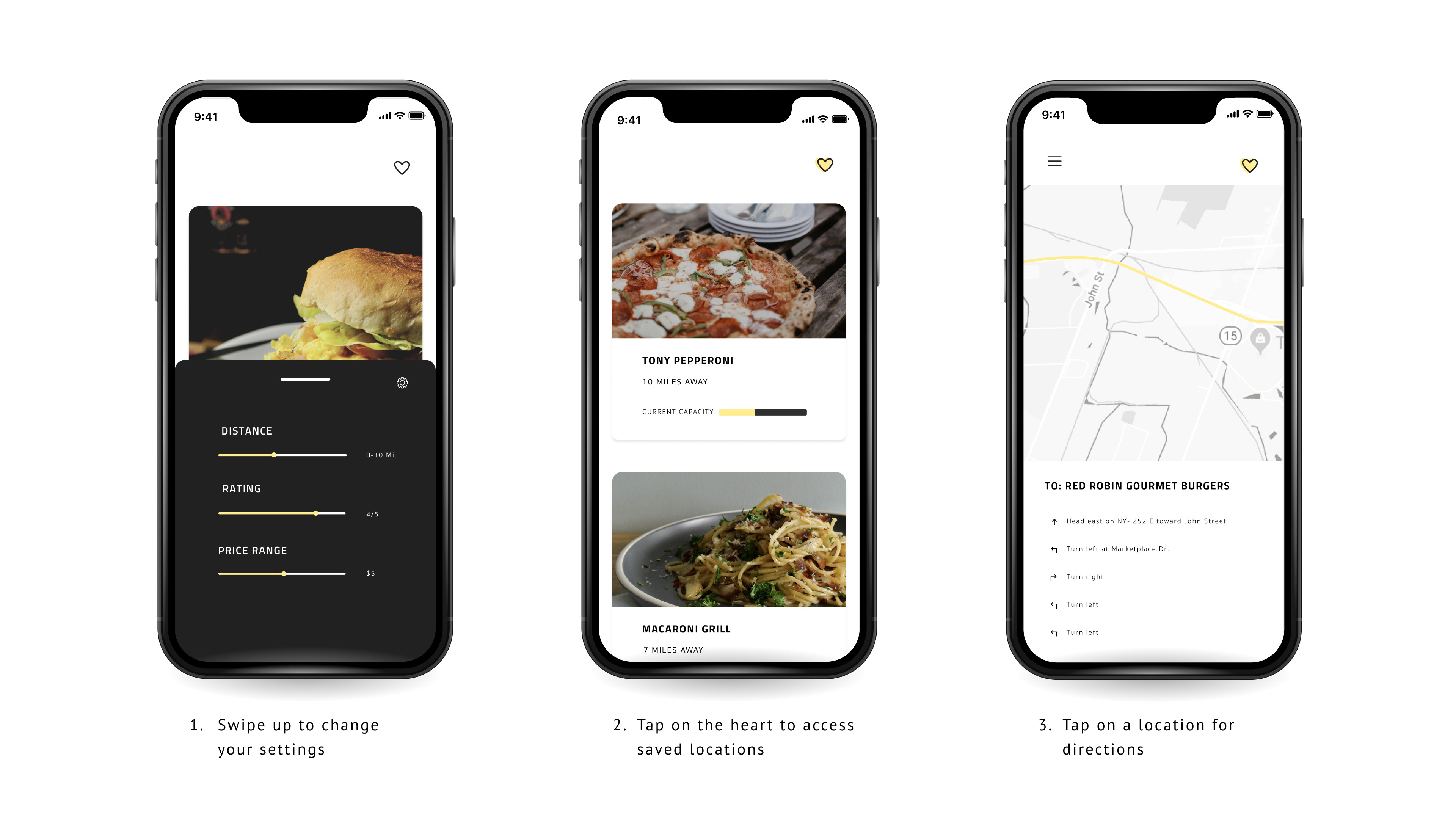 Given the urgency (and potential for hanger involved with searching for restaurants), I chose to stick with clean, geometric lines, with an underlapping bright yellow for importance, as seen in the far right image with the "Business for Breakfast" bottle.